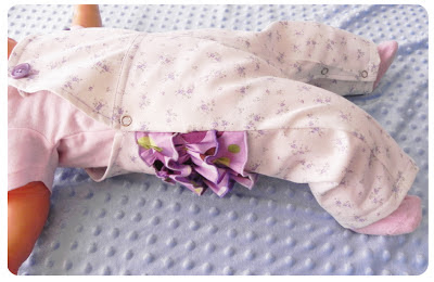 And here some picture of the finished overalls. I don't have a gorgeous little baby of my own to take picture so here are a few pictures of my daughter's doll wearing it :)